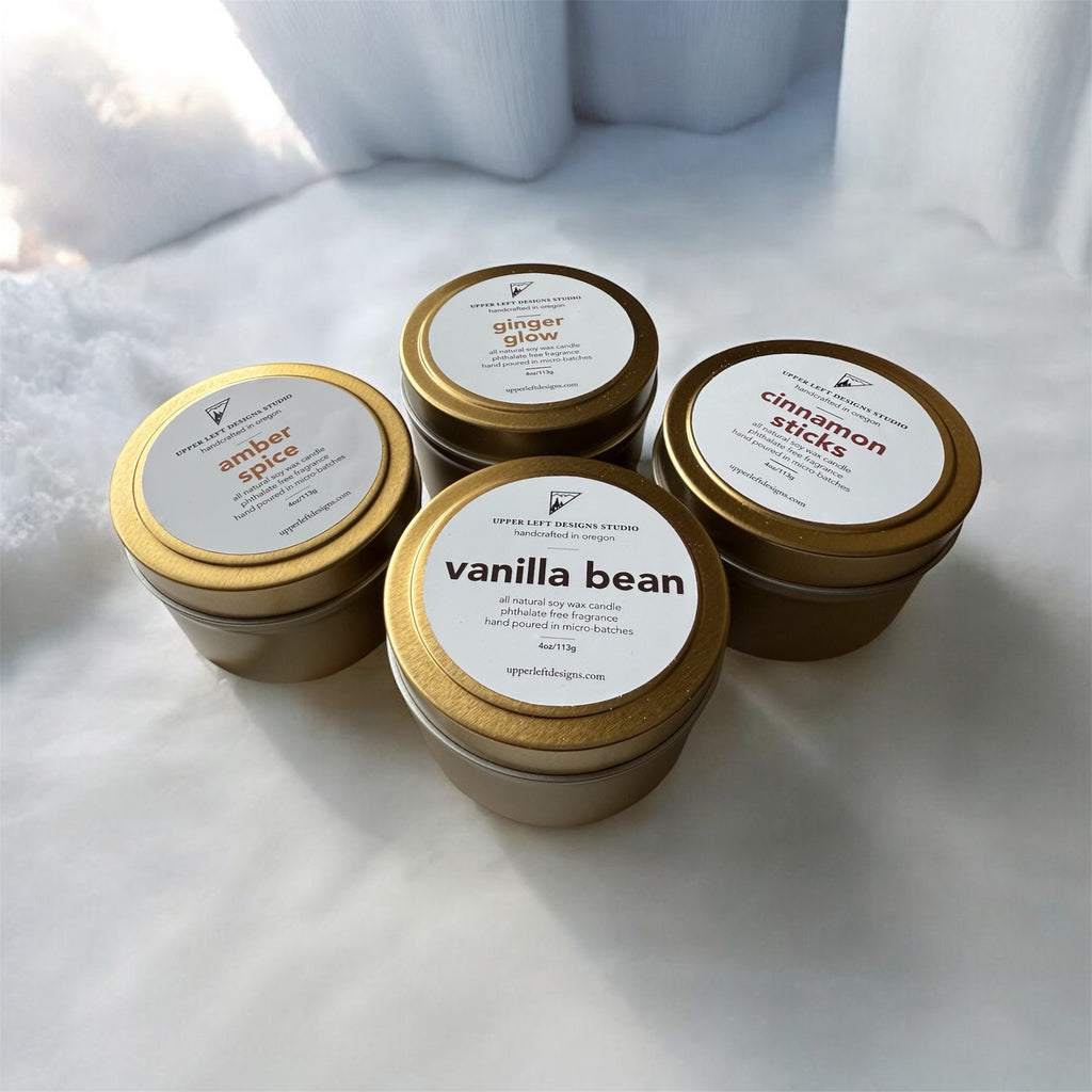 Our soy candles and wax melts are crafted with care in small batches using pure soy wax and clean, phthalate-free fragrance oils. Each one is designed to create a cozy, grounded atmosphere — perfect for slow evenings, meaningful moments, and intentional living.